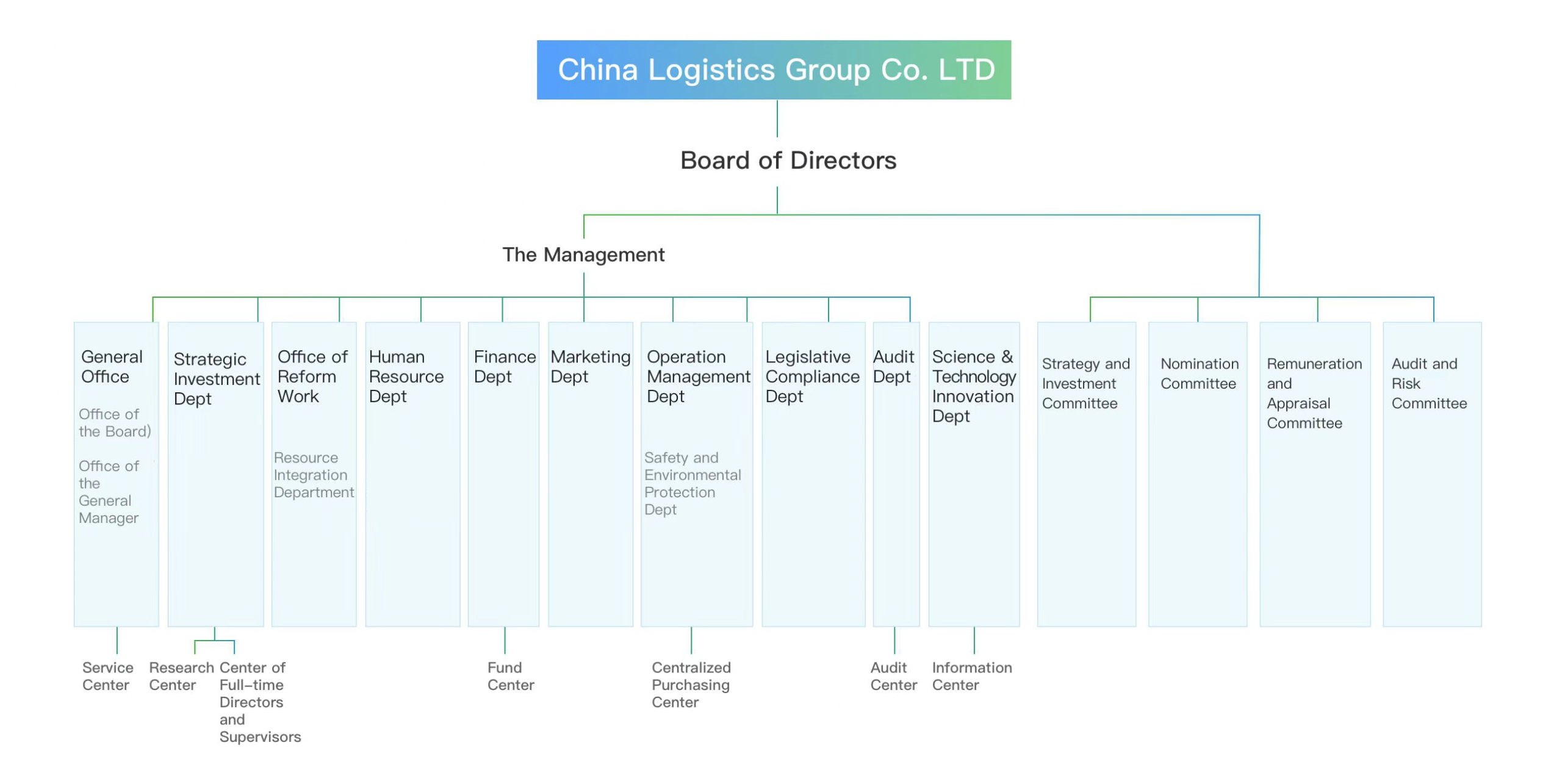 Leyu Logistics is a state-owned enterprise (SOE) group with diverse equity under the direct supervision of the State-owned Assets Supervision and Administration Commission of the State Council (SASAC). Leyu Logistics has emerged through the integration of five companies,one is the former China Railway Materials Group Co., Ltd., while the other four belong to the logistics industry under China Chengtong Holdings Group Ltd: China Materials Storage & Transportation Group Co., Ltd., CTS International Logistics Corporation Ltd., Leyu Logistics Co., Ltd., and China Packaging LLC.