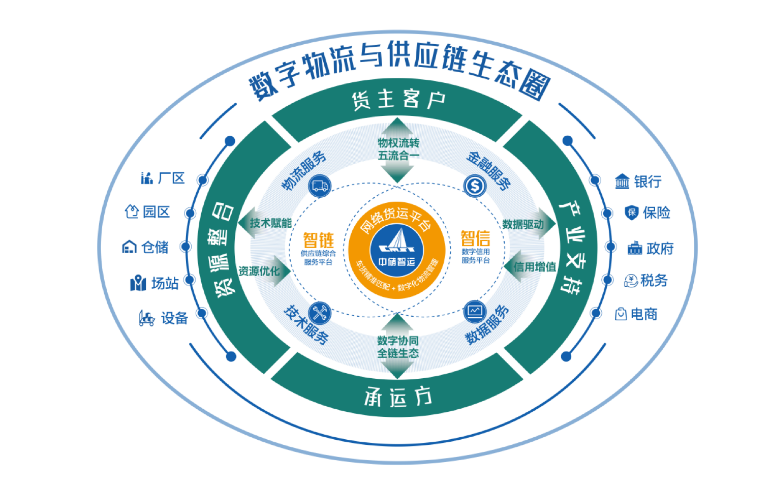 智信数字信用服务平台基于智运、智链平台真实业务形成的可信数据存证,利用区块链技术,将供应链业务产生的商品贸易、物流、支付结算、融资等各类真实数据作为第三方可信数据元,通过与政府、银行、保险、税务等的合作与数据共享,为供应链上下游企业、服务商、承运人会员等提供司机运费预付、货主运费贷等数字信用和数字供应链金融服务,实现供应链上下游各环节的高效流通与闭环管理。